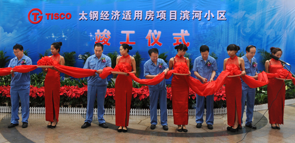 6月28日上午,太钢举行经济适用房项目——滨河苑小区竣工剪彩仪式。太钢董事长李晓波、党委书记杨海贵、集团公司副总经理侯进平、工会主席王继光以及小区住户代表,建设、监理和施工单位代表参加仪式。