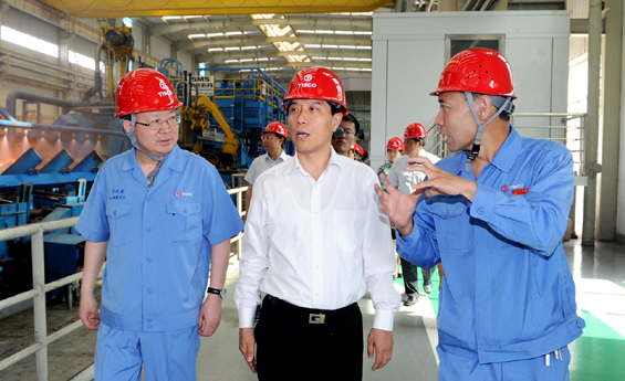 6月12日上午,山西省委常委、副省长高建民,省政府副秘书长盛佃清,以及省商务厅、省国税局、太原海关、省财政厅、检验检疫局、省外管局、中信保山西公司等部门相关人员深入太重与太钢,就企业外贸工作进行调研,并在太钢不锈钢工业园区进行了交流座谈。太钢董事长李晓波、不锈钢股份公司副总经理柴志勇以及相关部门负责人参加。