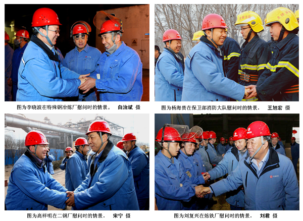 公司领导刘复兴、谢力及有关部门负责人先后来到营销部、炼铁厂、二钢厂看望了节日期间坚守在工作岗位的职工们。