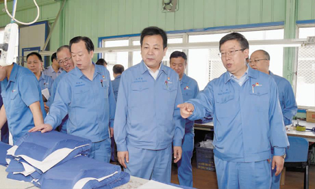 高祥明深入福达服装分厂,详细了解生产装备、工艺流程,要求关注职工的工作和生活,确保安全生产;积极对标,向现代服装加工企业学习,开发新产品,开辟新市场,不断提高经营绩效,更好地服务职工群众。