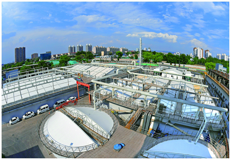 该项目相关负责人介绍,污水池加盖除味主要是采用新型反吊膜对污水池进行封闭,再对池内挥发性气体进行集中收集处理,通过碱洗、水洗、生物滤池净化等,将酚氰废水中原有的氨气、硫化氢进行物理化学吸附,将其中有机物进行生物净化处理,从而达到除味效果。封闭所用的膜材为氟碳纤维膜,这种膜材抗腐蚀性强,抗拉性强,本身具有非粘着性,不易粘附灰尘,能有效降低后续维护成本,同时还具有气密性好的特点,能隔绝内部气体对钢结构的腐蚀,大大延长了封闭工程的使用寿命。