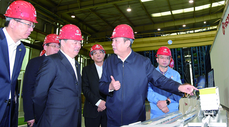10月22日,国务院国资委党委书记、主任郝鹏到太钢精带公司调研。 王旭宏 摄