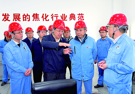 贺天才一行先后查看了炼焦、烧结、炼铁等生产环节,对企业超低排放改造完成情况进行了调研。作为省市环保部门严控的重点部位,近年来,焦化工序按照超低排放要求和公司“三不一合格”目标,持续深入开展环保大提升、大整治,加快推进环保提标改造项目建设,焦化全火车运煤、化产区域VOCs治理、干熄焦烟气脱硫、焦炉煤气脱硫脱氰制酸、酚氰污水池封闭除味等项目先后投用,环保治理取得了显著成效。贺天才对太钢焦炉环保管理情况予以高度评价,要求省市环保部门总结先进经验,予以推广。贺天才一行还到炼铁厂450平方米烧结机、五高炉生产现场进行了检查,当看到提标改造后烧结机烟气脱硫脱硝排放数值大大低于超低排放要求时,对太钢率先在全省提前一年实现全流程超低排放给予充分肯定。