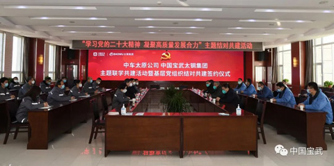 为深化双方党委的联学共建活动,首发仪式后,中车太原公司研发部与太钢技术中心举行了基层党组织联学共建活动。党的二十大代表、太钢不锈冷轧厂牛国栋对党的二十大精神进行了宣讲。