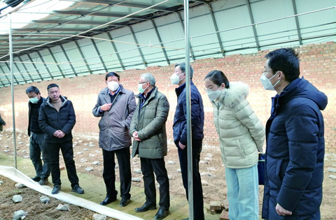 图为盛更红在河北庄村羊肚菌大棚基地调研。 吕勇军 摄