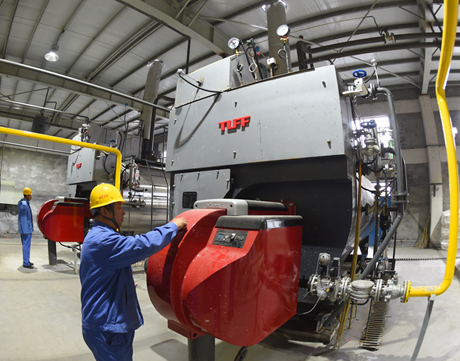 图为该矿燃气锅炉取代燃煤锅炉后,工作人员轻松地操作燃气锅炉。 王旭宏 摄