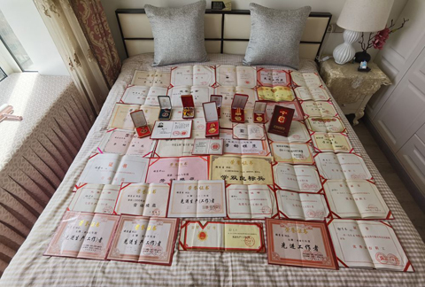 谢东升的家里有一面“奖状墙”,上面摆满了他自工作以来获得的各种荣誉证书、奖状,全国劳模、山西省劳模、太钢先进生产工作者……令人眼花缭乱的荣誉称号把整面墙映衬得金光灿灿,它代表了这位68岁退休工人的光荣历史。而如今,这面墙上又多了一些新的奖状,它们属于35岁的谢璐。
