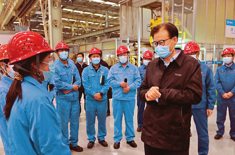 11月2日下午,中央宣讲团成员、中央办公厅分管日常工作的副主任孟祥锋在省委常委、秘书长李凤岐和省委常委、宣传部部长吴伟的陪同下,走进中国宝武太钢不锈钢精密带钢有限公司,深入生产车间开展面对面的宣讲,与职工代表进行交流互动,并调研了解高端不锈钢研发、生产、应用情况,鼓励企业在党的二十大精神指引下,提高干事创业的本领,弘扬创新精神,走好科技兴企、人才强企之路。
