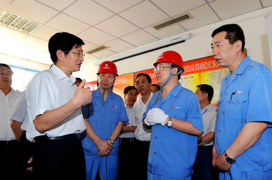 图为李兆前在太钢能源动力总厂了解该厂党务公开情况。 白治斌 摄