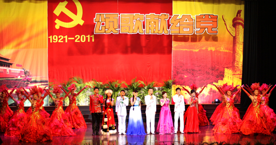 6月20日下午,太钢庆祝中国共产党建党90周年专场文艺演出在太钢工人俱乐部隆重举行。公司领导杨海贵、刘复兴、周宜洲、王新平、韩瑞平、王继光、高祥明、张志方、韩珍堂,公司老领导吴晓程,公司副总,全公司广大党员代表观看了演出。