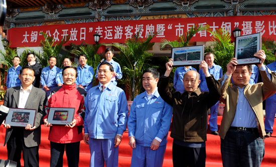 4月23日,随着第48批参观者走进太钢,太钢“公众开放日”活动接待公众参观人数突破1万人。当天上午,公司在渣场公园举行仪式,为11名幸运参观者颁发纪念牌,为“市民看太钢”摄影比赛获奖者颁奖。公司党委副书记王新平出席仪式并讲话。