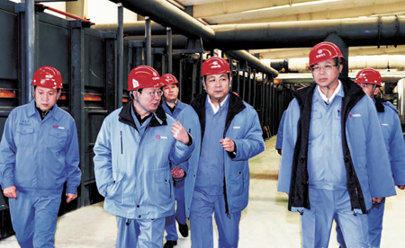 调研中,李晓波、高祥明先后来到预制件、炮泥、镁钙砖等车间和办公区域,实地了解项目建设、工艺装备、人员组织及现场安全等情况,并听取了该公司发展规划介绍。