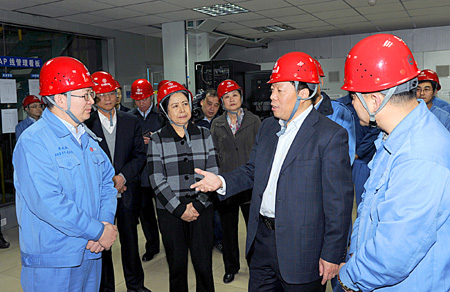 韩文秀一行首先来到炼铁厂,详细了解了高炉工艺技术及循环产业发展情况。李晓波介绍说,随着工艺技术的革新,炼铁工序生产效率和质量控制都得到了极大提升。太钢充分利用高炉压差进行发电,回收高炉生产过程中产生的余热为城市供热,使高炉成为一个“循环经济体”,经济效益和社会效益显著。韩文秀说,太钢在节能减排循环经济上做了大量工作,各项环保技术指标名列前茅,为太原市环境质量改善作出了重要贡献,希望太钢继续努力,更好地与城市融为一体,实现新的发展。在主控室,韩文秀与当班职工热情交谈。高炉作业区主管陈树文代表职工首先提问:“国有企业干部职工如何在工作中落实好党的十八届五中全会提出的五大发展理念?”韩文秀说,五大发展理念对全国、对各地区乃至企业的发展都具有重要的指导意义。对企业、对广大职工而言,提高竞争力最根本地要靠创新、创新、再创新。大众创业、万众创新不是中小企业的专利,大企业也要积极投入到“双创”当中,为职工小组、团队等创造好的创新环境,还可以建设内部创客空间。广大职工也要参与创新,让自己的创意变成现实,为企业发展作出贡献;要有协调发展的理念和思路,促进钢铁主业和非钢产业的协调发展,促进企业与职工的协调发展,保证企业上下同欲、步调一致;要继续坚持绿色发展战略,在绿色发展上还要有更大作为,引领钢铁行业绿色发展潮流;开放发展需要我们走出国门,挖掘海外市场潜力,开辟更广阔的发展空间;共享发展就是要“人人参与、人人尽力、人人享有”,企业是我们大家的,每一名职工都要有主人翁精神,为企业生产经营建设贡献力量。韩文秀鼓励大家,过去有一句话叫“咱们工人有力量”,那时候工人出力流汗,今后我们的力量还要体现在智慧上,靠勤奋加智慧赢得未来,实现每一个人的梦想。话音一落,现场响起热烈的掌声。