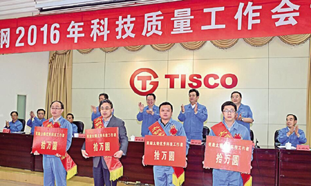 5月20日,太钢召开2016年科技质量工作会议,对2015年度优秀科技成果、科技质量工作先进集体和先进个人进行表彰,总结科技质量工作,对下一步科技质量工作进行部署。会议号召,科技质量战线要加快构建凝聚力、协同力、生命力、爆发力和执行力,加快形成推动公司科技质量工作再上新台阶的大势,为实现“百年太钢梦”再作新贡献。