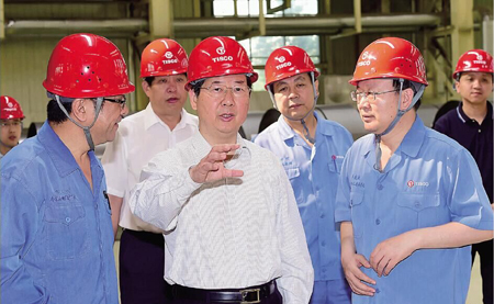 图为楼阳生在太钢冷轧硅钢厂调研时的情景。 白治斌 摄