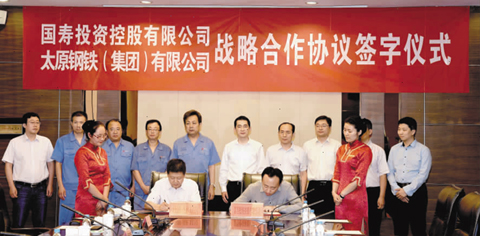 8月19日,太钢集团与国寿投资控股有限公司在花园会议中心签署战略合作协议,进一步做强做大医疗健康产业,打造医疗健康全产业链。集团公司总经理高祥明、副总经理彭存根及相关副总级领导;国寿投资副总裁万谊青、中国人寿山西分公司副总经理陈社选等出席签字仪式。